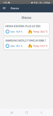 • Visualización de discos: Controla tus unidades HDD/SSD, su uso en porcentaje, y la temperatura de cada una.