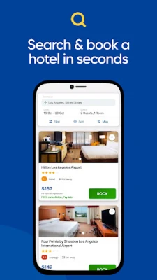 Last minute hotel deals app, search and compare best lastminute hotel booking deals and cheap hotels for your last-minute travel. Our hotel app provides the latest last minute deals by comparing online hotel booking providers like Lastminute, Hotel com, Hotels tonight, Hotwire com, Priceline, Orbitz, Booking com, Airbnb, Trivago, Klook, Agoda, Tripadvisor, Expedia, Reddoorz, Oyo hotel, Hotelscombined, Travelocity, Vrbo vacation rentals, and many more. Book hotels with great offers and discounts to make your travel budget-friendly.