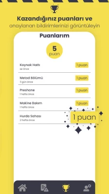 Küçükoğlu Holding çalışanları için tasarlanmış ve devreye alınmış bu mobil uygulama kullanılarak, işyerindeki tehlikeli durumların ve ramak kala olayların daha hızlı bildiriminin yapılması ve işyerindeki kazaların önlenmesi için çalışanlar ile iş birliğinin artırılması amaçlanmıştır. Uygulama vasıtasıyla gelen bildirimlere göre aksiyon planları dijital ortamda hazırlanmakta ve bu planlara göre önleyici faaliyetler uygulanmaktadır. Kullanıcılar her bildirim için puan almakta ve toplanan puanlar karşılığında ödül almaktadır. Kullanıcılara anlık bildirimlerle İş sağlığı ve Güvenliği ile ilgili faydalı bilgiler de aktarılmaktadır.